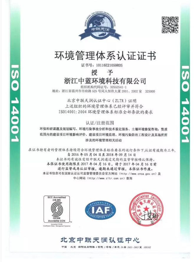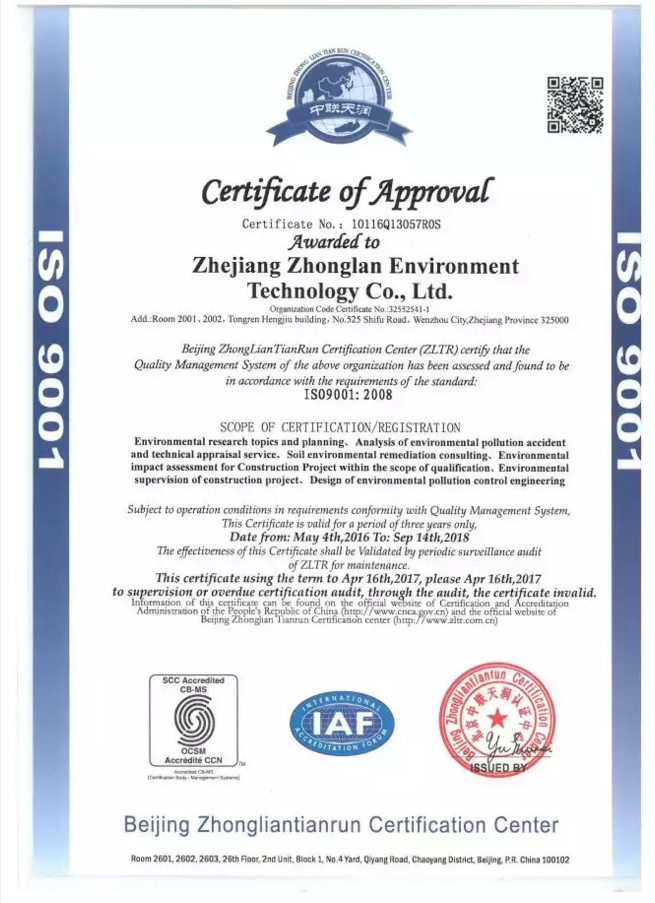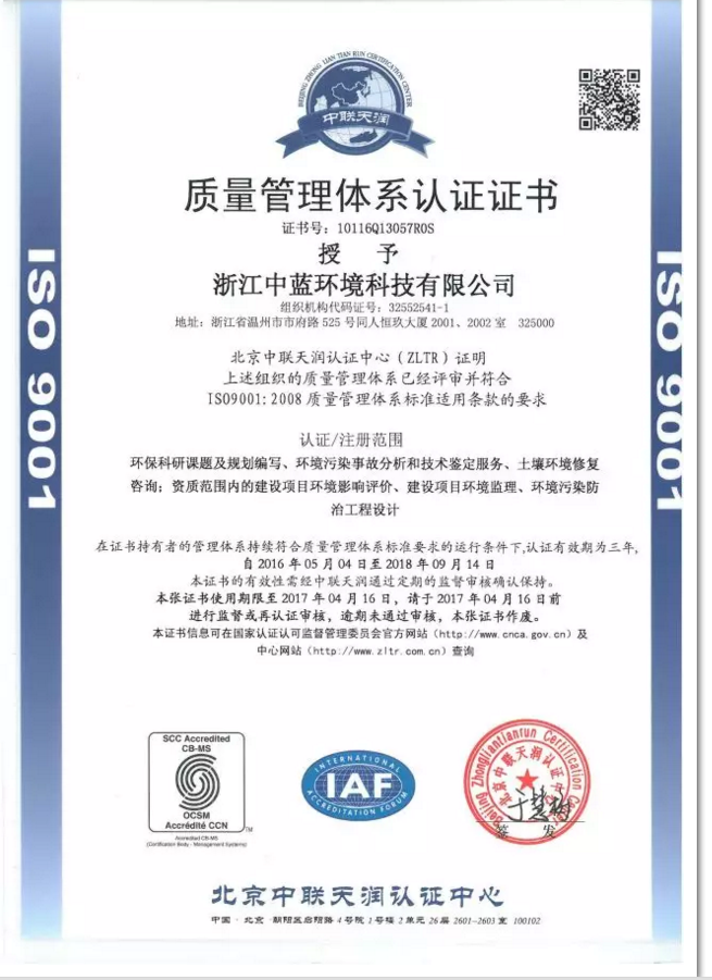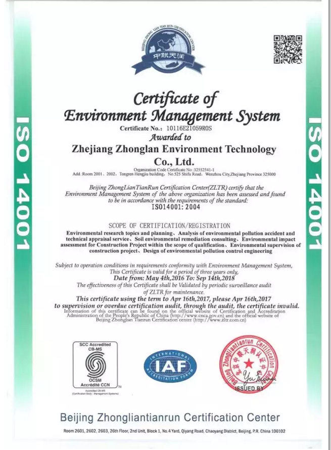 2016年5月4日,經過認證公司專家的全面、嚴格、細致的指導和審核,確認我公司質量管理體系和環境管理體系分別符合ISO9001:2008和ISO14001:2004標準的要求,向我公司正式頒發了認證證書。