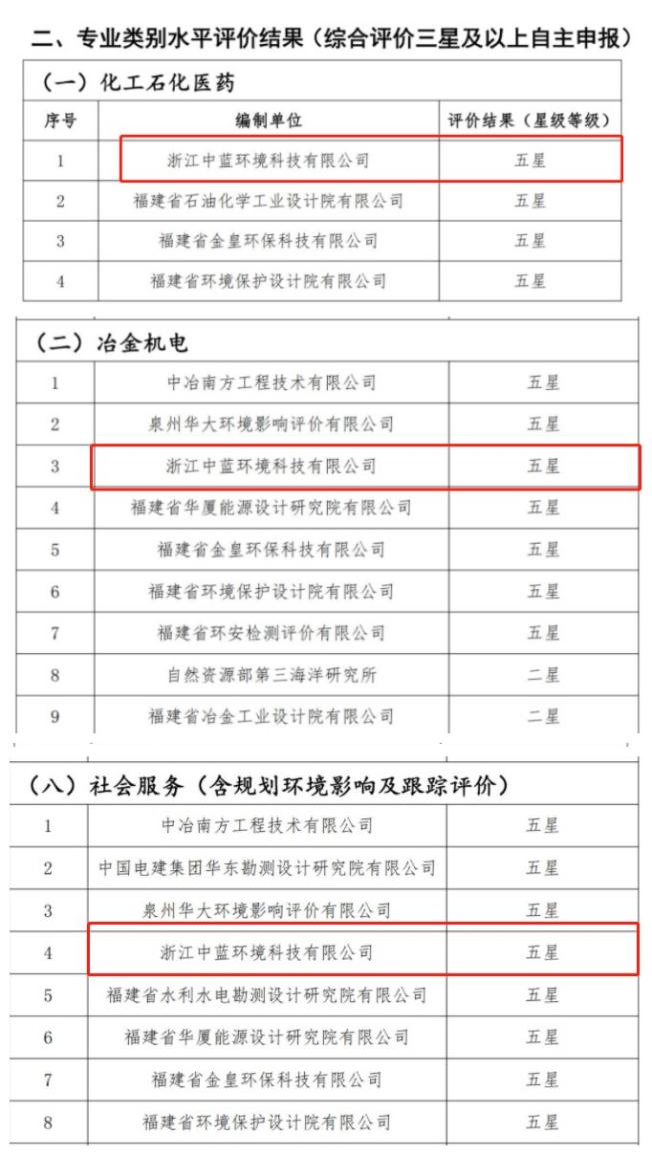 近日,福建省環(huán)境影響報(bào)告書(shū)(表)編制單位水平評(píng)價(jià)2022年第二季度評(píng)價(jià)結(jié)果公示,我司獲評(píng)專(zhuān)業(yè)類(lèi)別(化工石化醫(yī)藥、冶金機(jī)電、社會(huì)服務(wù)等)水平評(píng)價(jià)五星等級(jí)。這是我司繼獲浙江省技術(shù)單位環(huán)評(píng)水平評(píng)價(jià)五星等級(jí)后又取得福建省環(huán)境保護(hù)產(chǎn)業(yè)協(xié)會(huì)的認(rèn)可。
